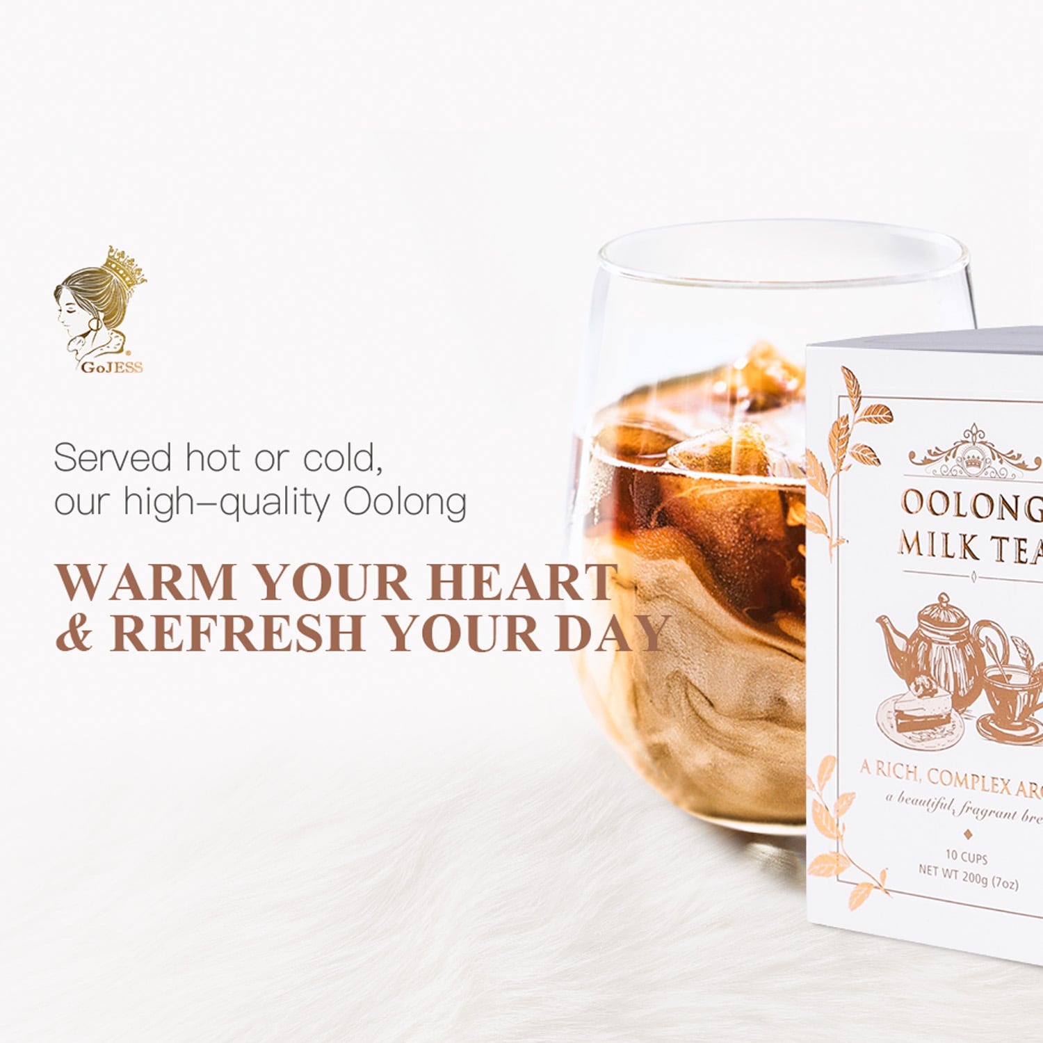 Servi chaud ou froid, notre thé au lait Oolong de haute qualité